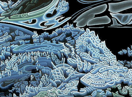 demonstrated by the vibrant green and blues alongside (painted much