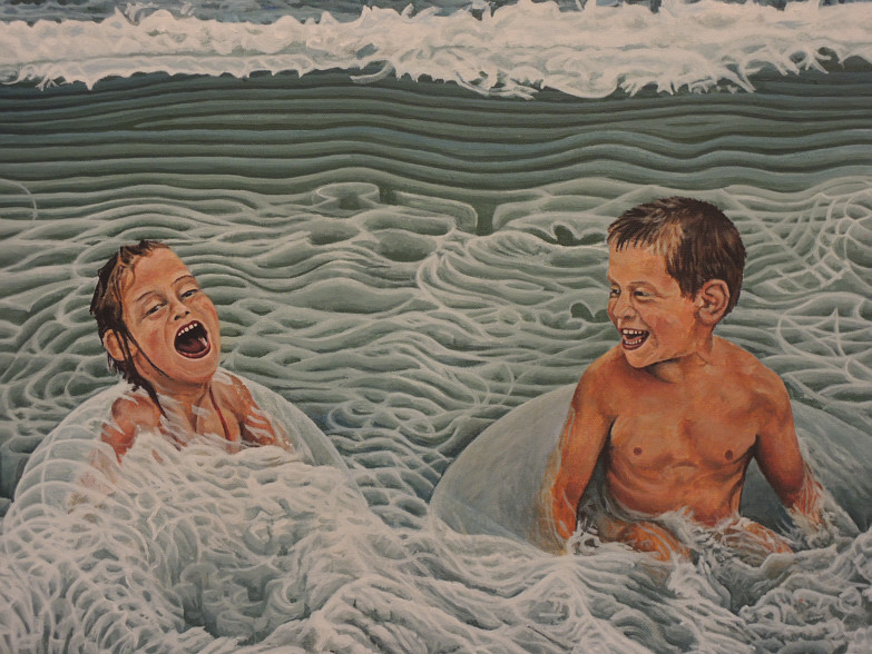 | This image is based on a photograph taken by my father, Robert Paul (b.1913- 2007), of myself and Robin (one of my 2 sisters), at Manasquan Beach , New Jersey, USA circa 1959. |